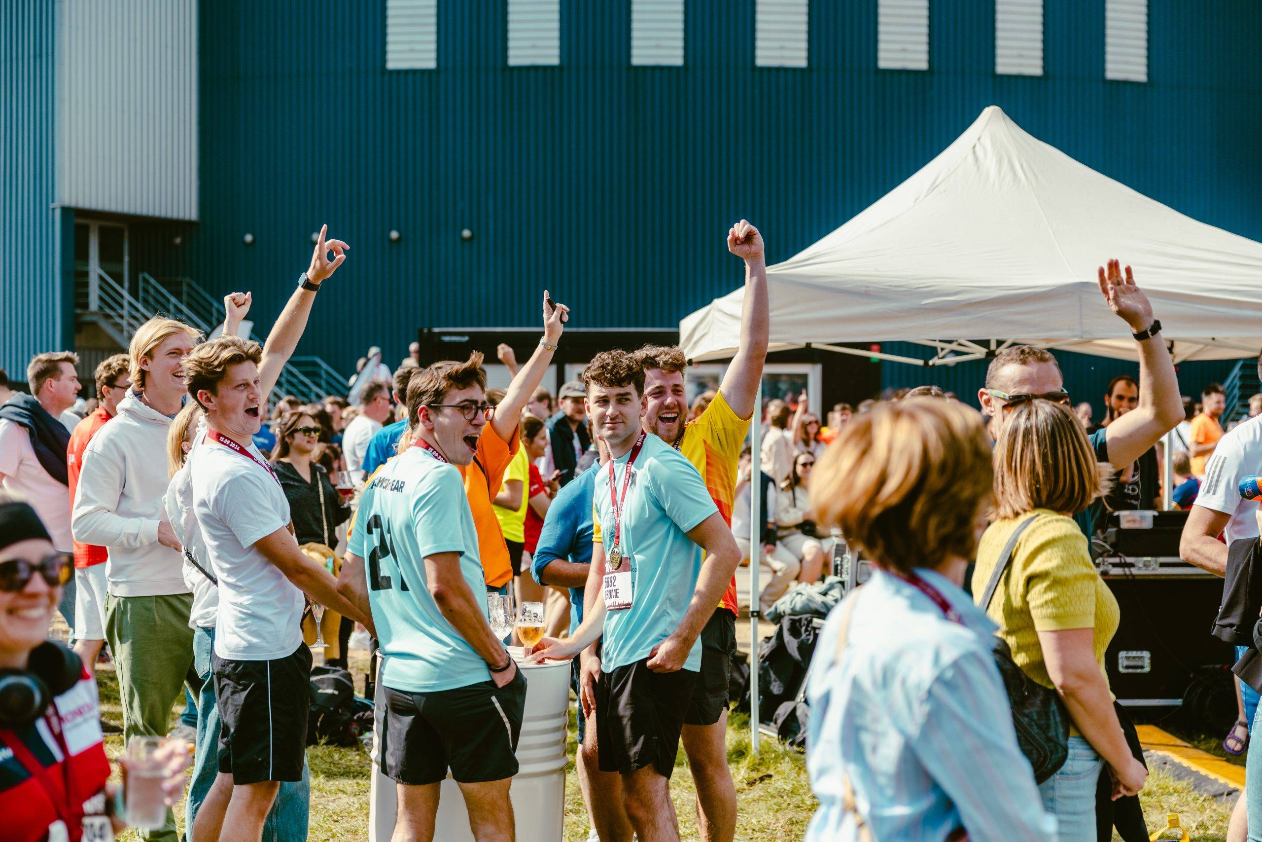 Finishen doen we in een feestelijke setting waar jullie worden opgewacht door familie, vrienden en collega’s waar men na de inspanning kan genieten van live muziek, eten en drinken. Een waar volksfeest met een festival!